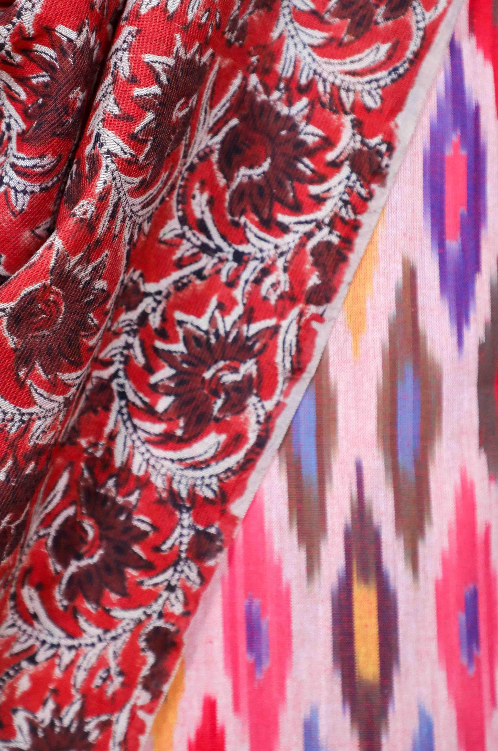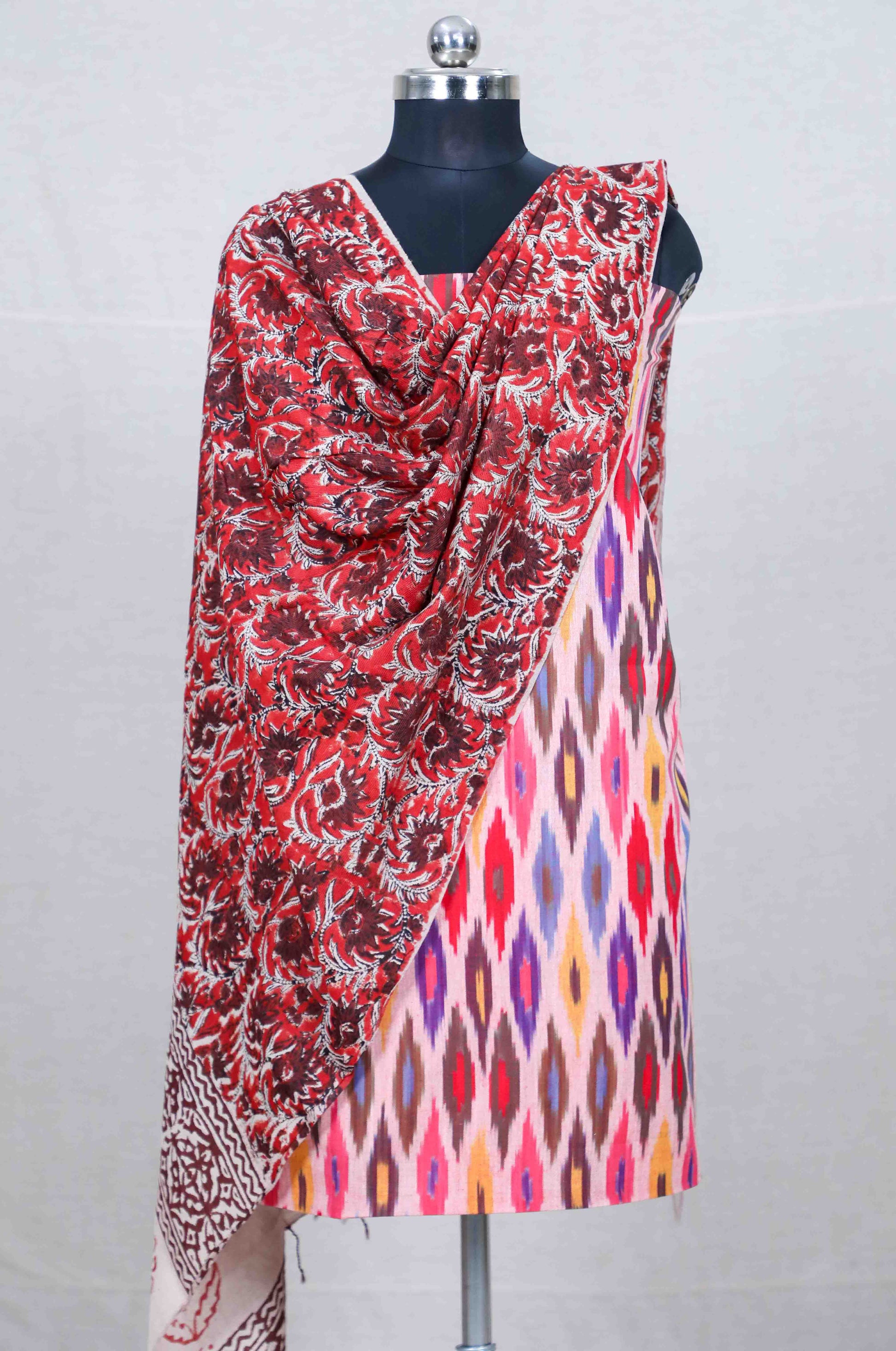 - Experience relaxed refinement with our Handloom Ikat ,Top paired with a Semi-Linen Kalamkari Cotton Dupatta, crafted for natural texture and breathable elegance.